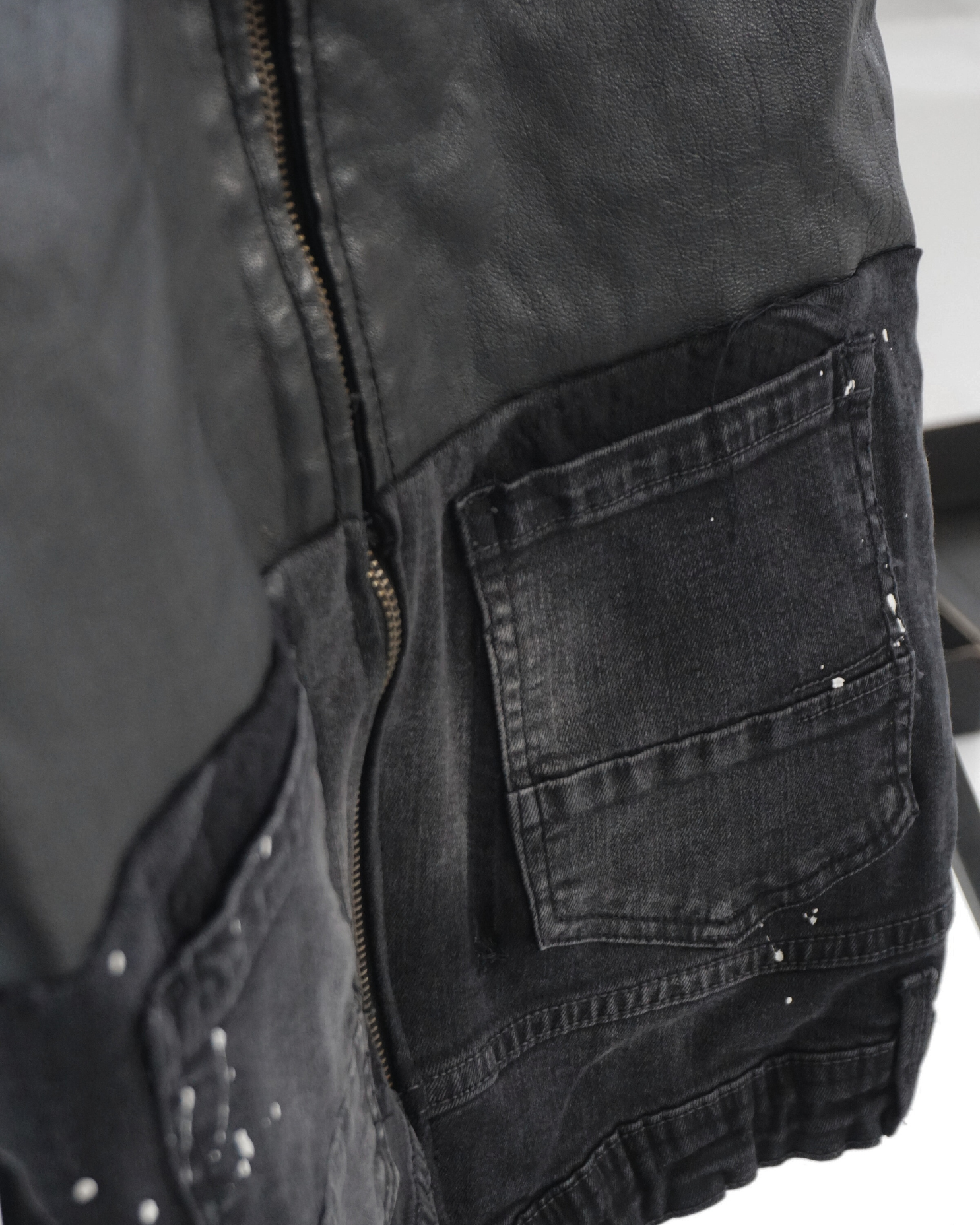 Fusion Layer Jacket” memadukan tiga karakter bahan dalam satu karya: kekuatan kulit, ketegasan denim, dan kehangatan flanel.